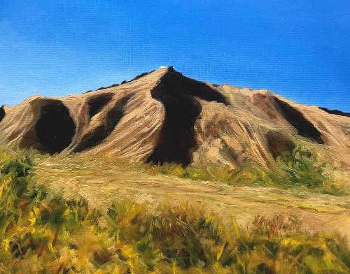 I like capturing landscapes that lend themselves to being painted in a gestural, expressive and colourful manner. This painting is based on several I made of the mountain forms on the island of Santorini, Greece.