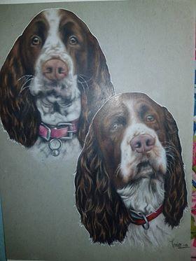 Portrait of two English Springer Spaniel Dogs. Materials used were coloured pencils on toned g... Read more